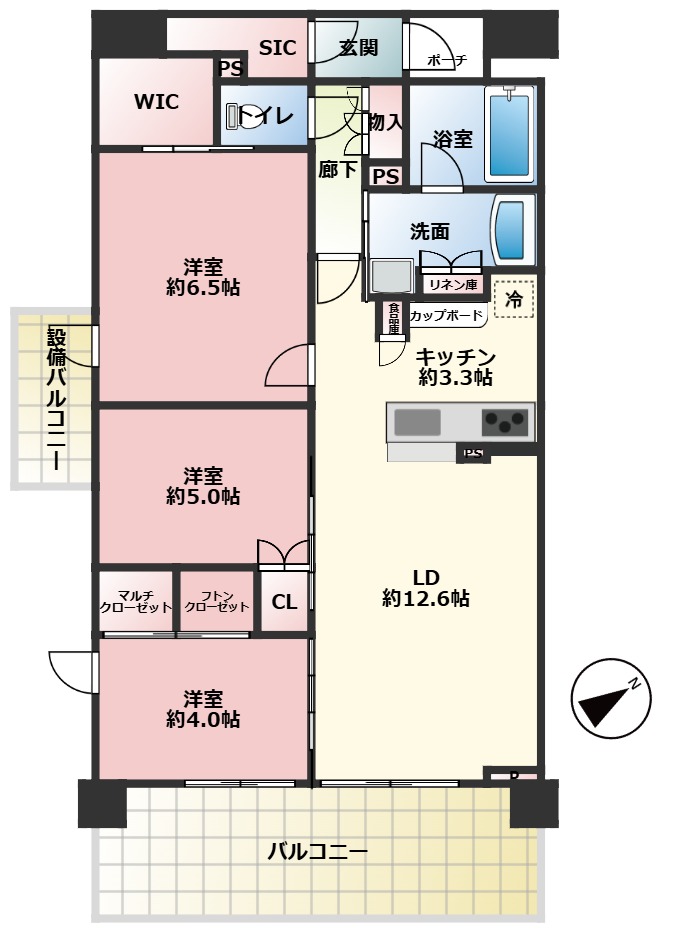 - 角住戸 / 全居室収納 / 全居室フローリング / ウォークインクローゼット / シューズインクロゼット / 床暖房