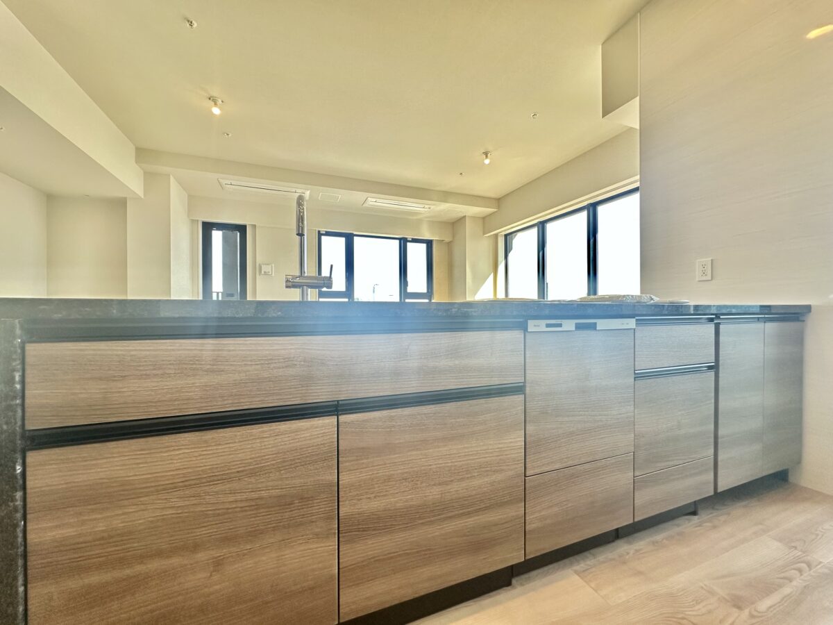 - 食器洗乾燥機 / 対面式キッチン / 浄水器 / ディスポーザー(生ごみ粉砕処理器) / 天然石天板 / ソフトクローズ機能