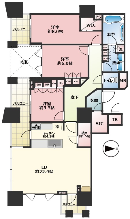- 角住戸 / 全居室収納 / 全居室フローリング / ウォークインクローゼット / シューズインクロゼット / 床暖房 / 天井カセット付エアコン / 納戸